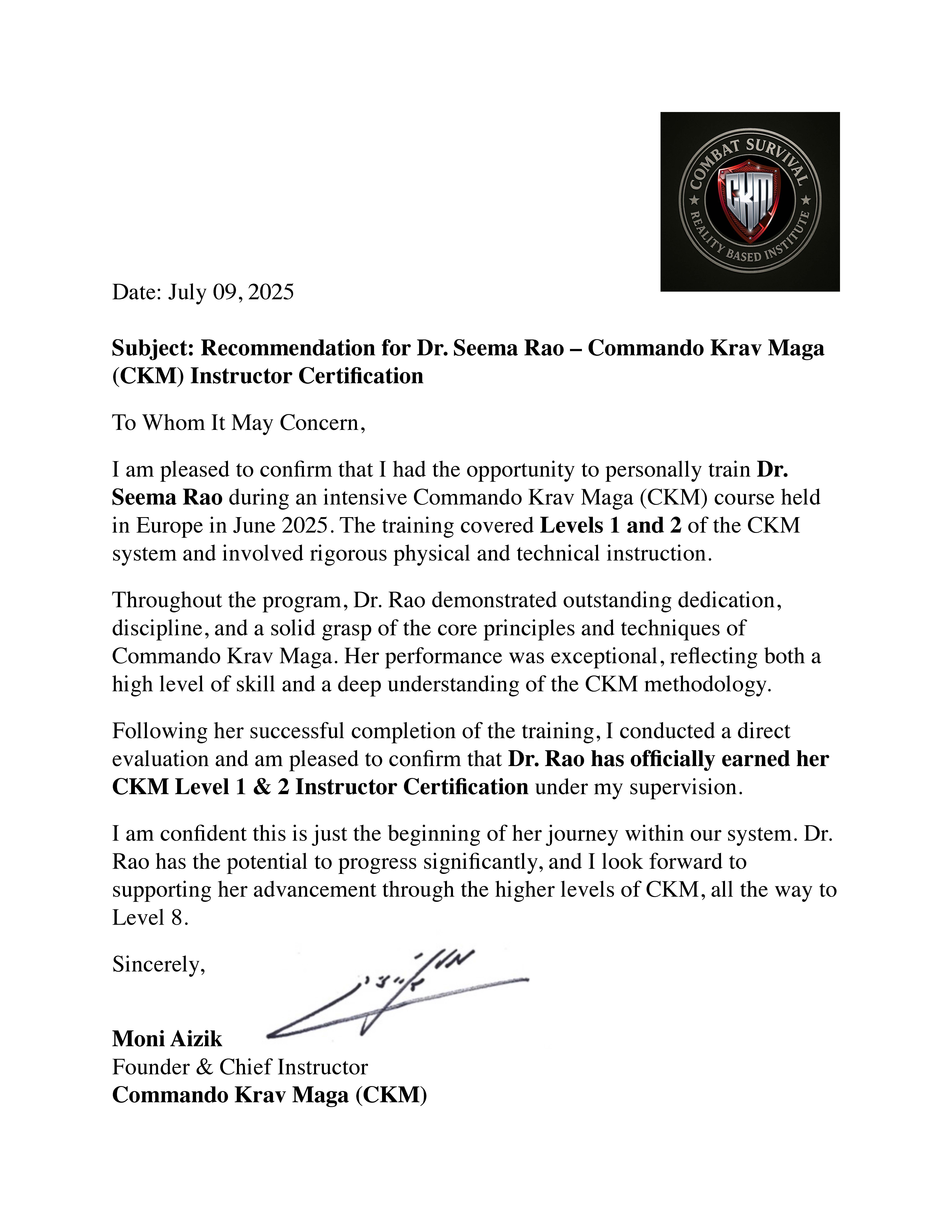Click Here for Commendation Letter from Grand Master Moni Asik.